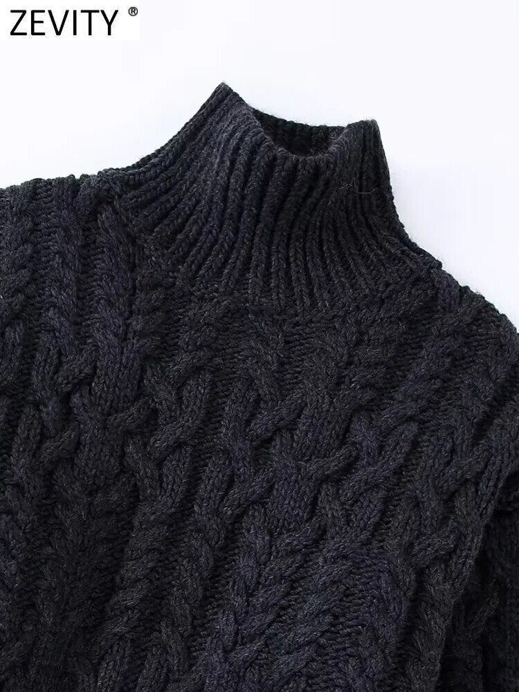 女性襟ツイストかぎ針編みショート ニット セーター シックな長袖クロップド プルオーバー トップス SW2646 ロング