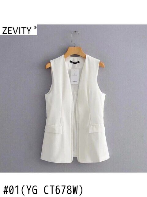 レディースブラックホワイトカラーノースリーブジャケット トップス ステッチ 会社 学校 通勤や通学にも Amy78484297162