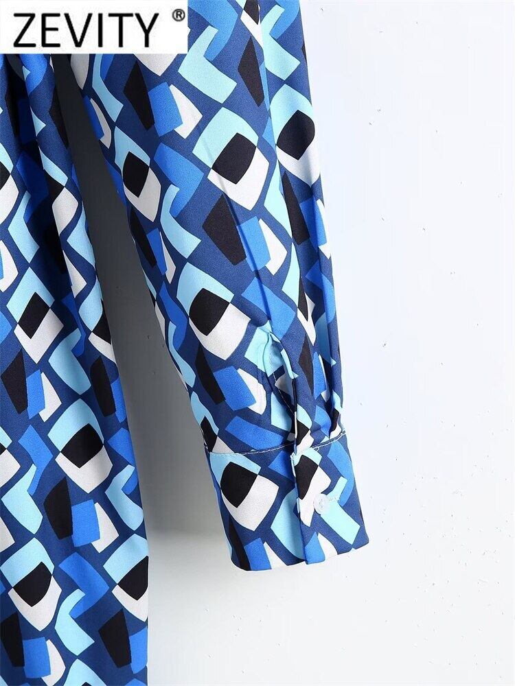 女性幾何学プリントウエスト包帯ミニシャツドレス長袖ブレストビジネス Vestidos DS2498 ロング