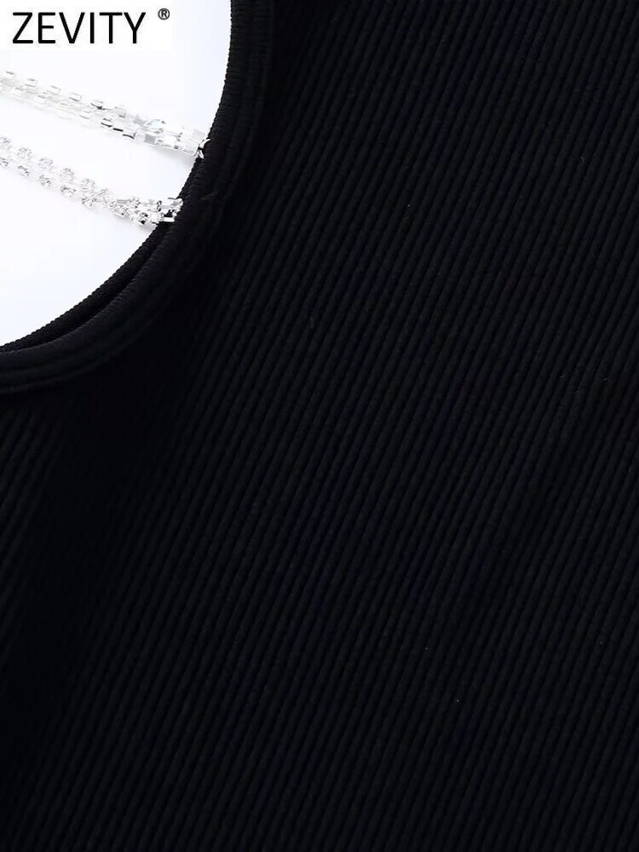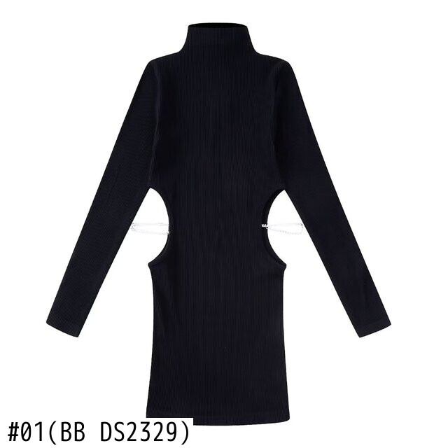 女性ウエストくり抜きダイヤモンド チェーン黒ニット ミニ シャツ ドレス長袖 Vestidos DS2329 ロング ブラック