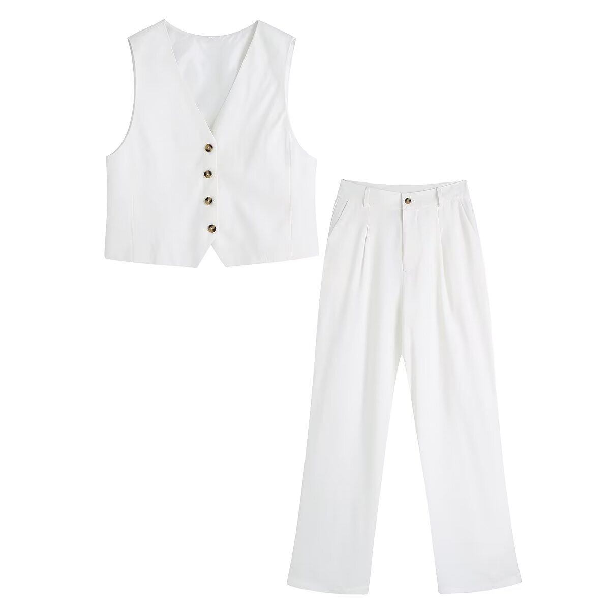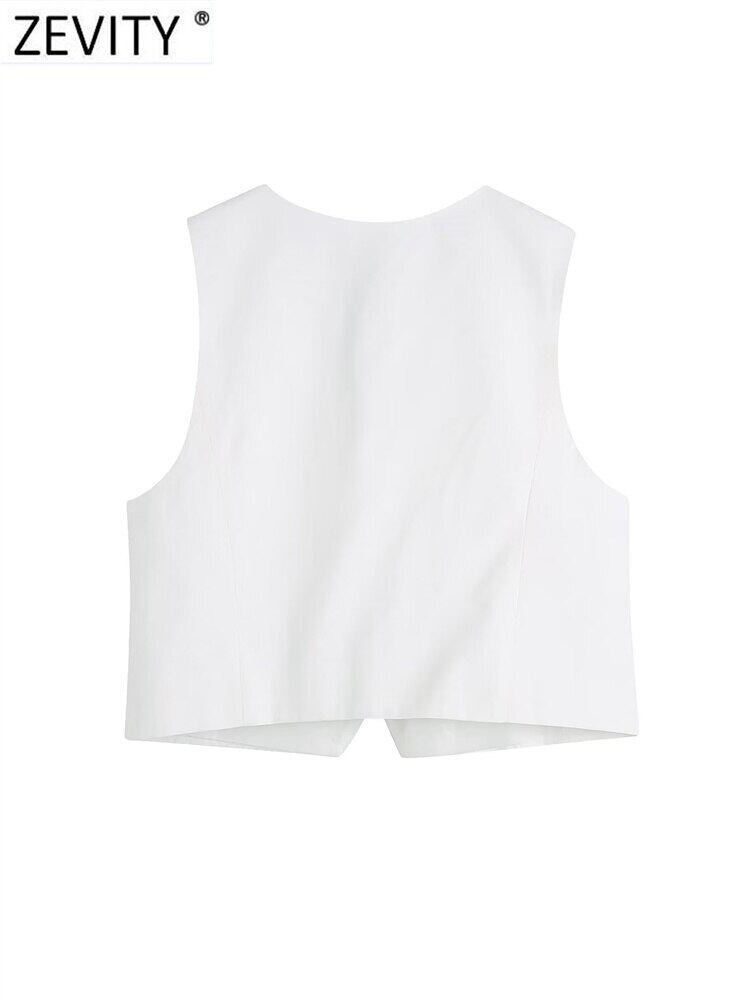 女性 V ネック ノースリーブ ホワイト ショート ベスト ジャケット オフィス レディー スリム リネン チョッキ トップス CT2223 Vネック 会社 学校 通勤や通学にも
