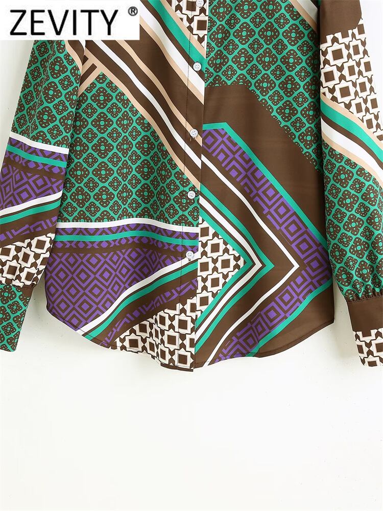 レディースパッチワークプリント柄ブラウス スタンダードシャツ トップス レトロ Amy55275287010