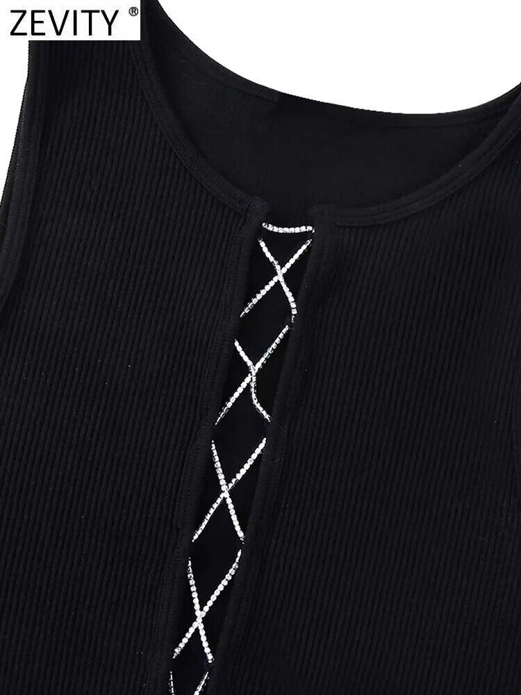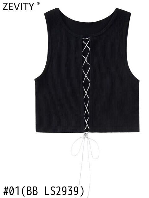 レディースバンドショートニット Tシャツ シャツ キャミノースリーブスリムトップス Amy75070857116