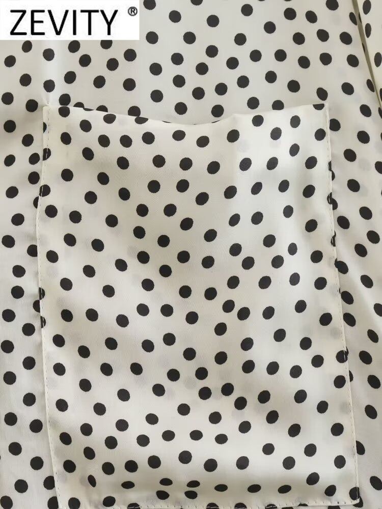 女性ダブルポケットパッチドットプリントスモックブラウスオフィスレディシングルボタンシャツシックトップス LS2699 会社 学校 通勤や通学にも