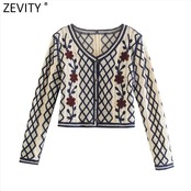 女性スウィートフローラル刺繍幾何学ジャカードニットカーディガンセーターシックなボタンショートコートトップス SW978 大人ガーリー キュート カジュアル 花柄
