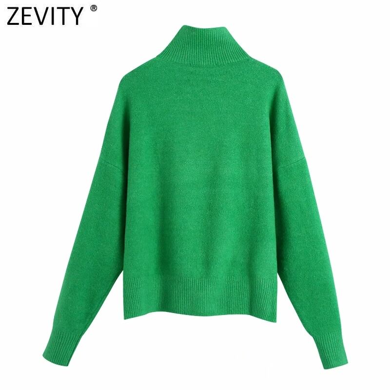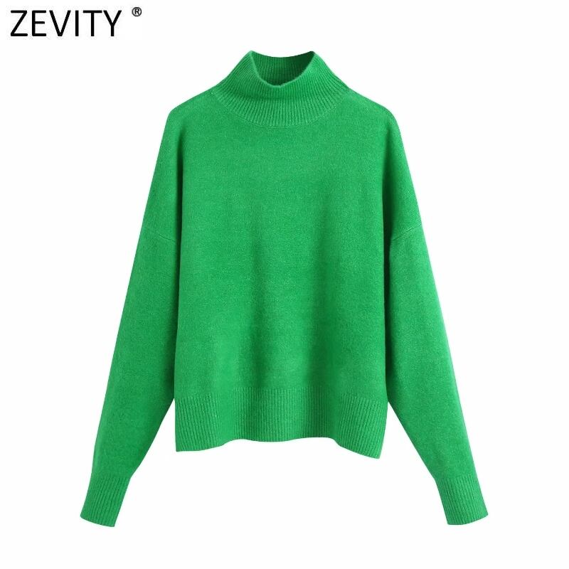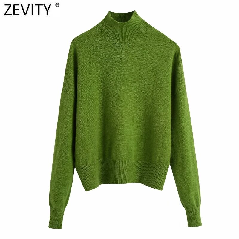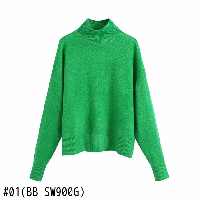 女性単にモックネックソリッドグリーンカラーニットセーターシックなベーシック長袖プルオーバートップス SW900 ロング ソリッドカラー シンプル