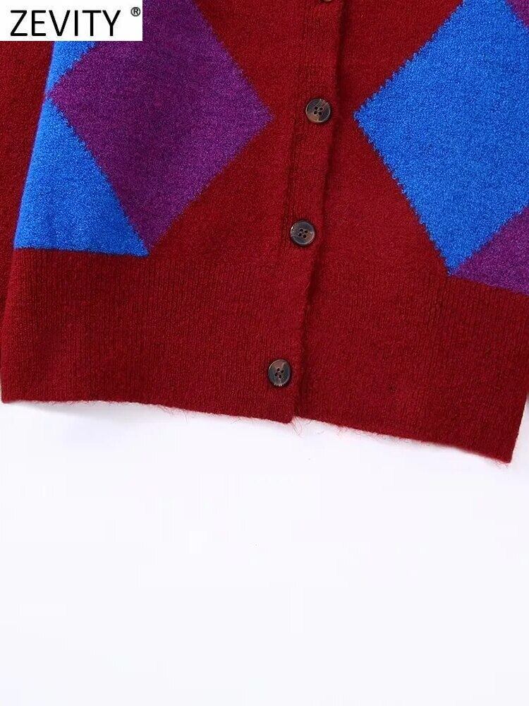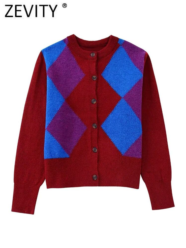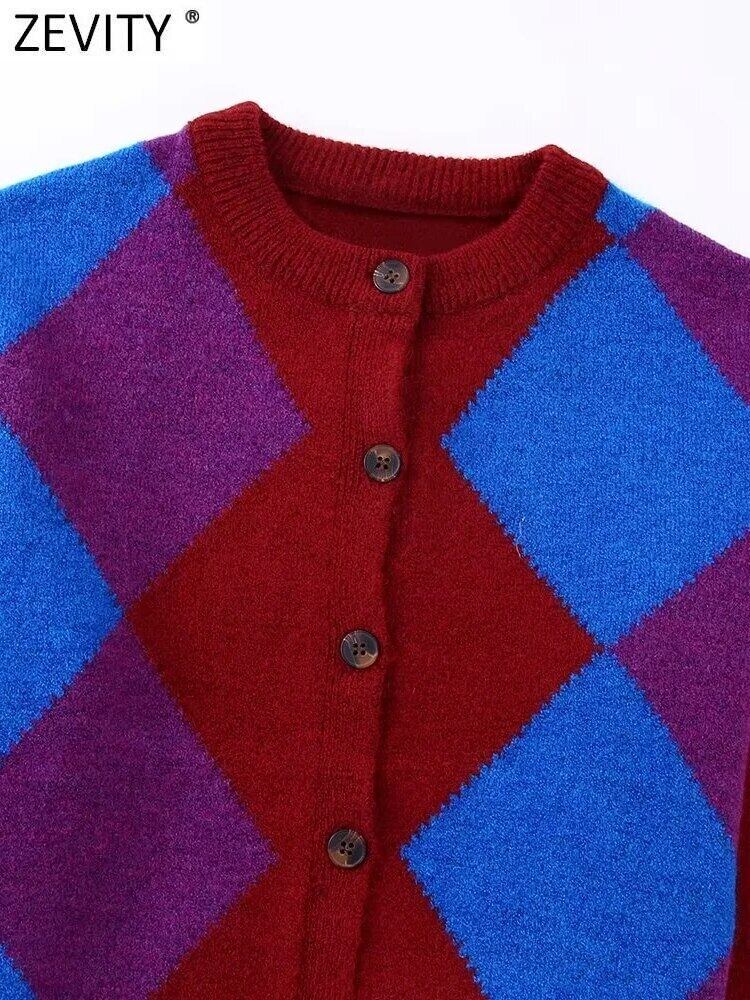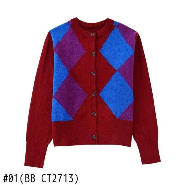 2022 女性アーガイル柄ニットセーターシックなボタンスリム幾何学カーディガンコート CT2713 トップス