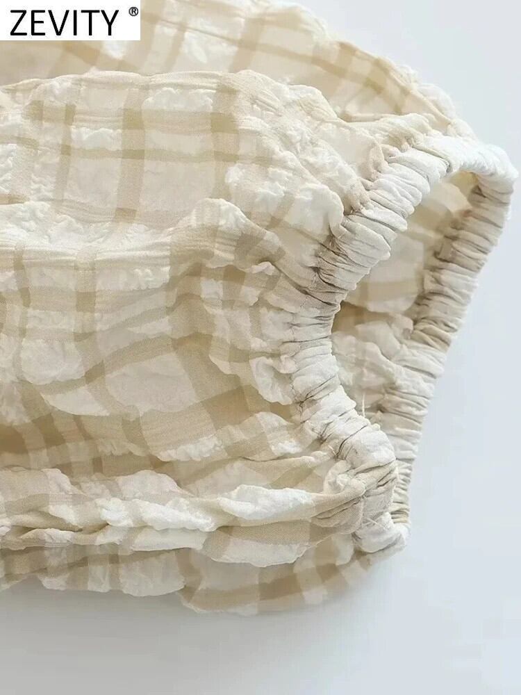 女性スウィートプリーツフリルチェック柄プリントスモックブラウスオフィスレディベニテングタケレースシャツシックなトップス LS2950 ラッフル 大人ガーリー キュート カジュアル 会社 学校 通勤や通学にも