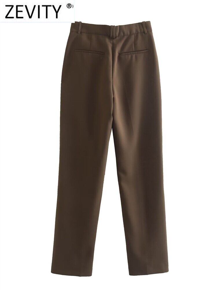女性無地ストレートパンツオフィスレディジッパーフライポケット長ズボン Pantalones パンツ P3028 ロング ソリッドカラー 会社 学校 通勤や通学にも