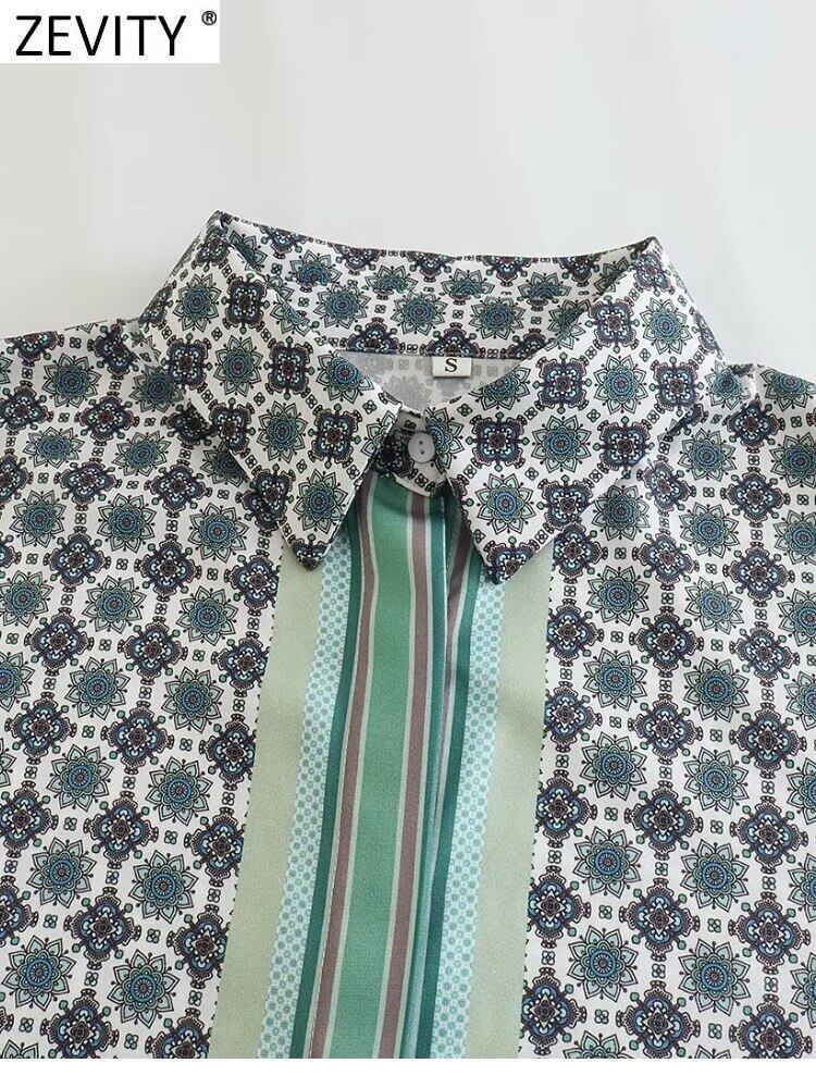 レディースフローラルパッチワークプリント柄スタンダードブラウス シャツ スリムトップス レトロ 花柄 会社 学校 通勤や通学にも Amy93479956169