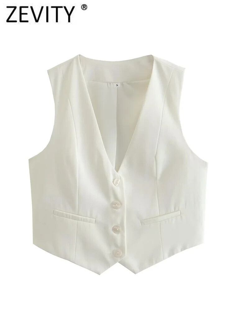 V ネックノースリーブホワイトショートベストジャケットオフィスボタンスリムチョッキトップス CT1787 Vネック 会社 学校 通勤や通学にも