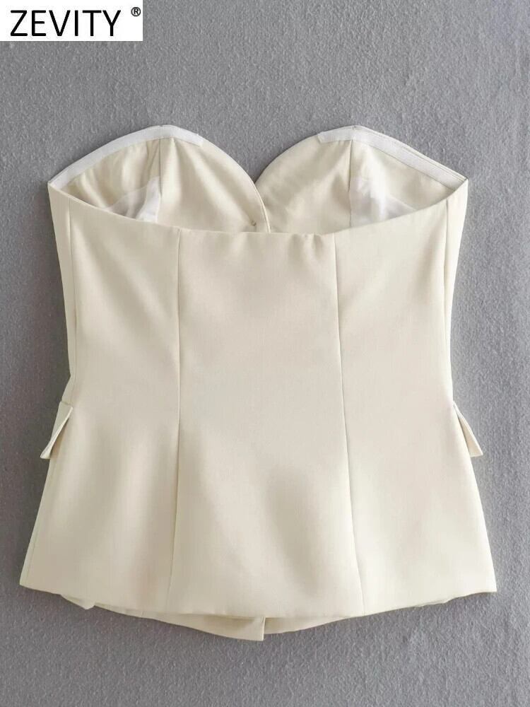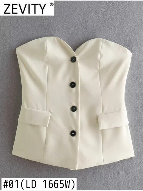 ストラップレスフラップポケットスリムベストジャケットオフィスレディシングルブレストビジネスチョッキ背中開いたトップス CT1665 会社 学校 通勤や通学にも