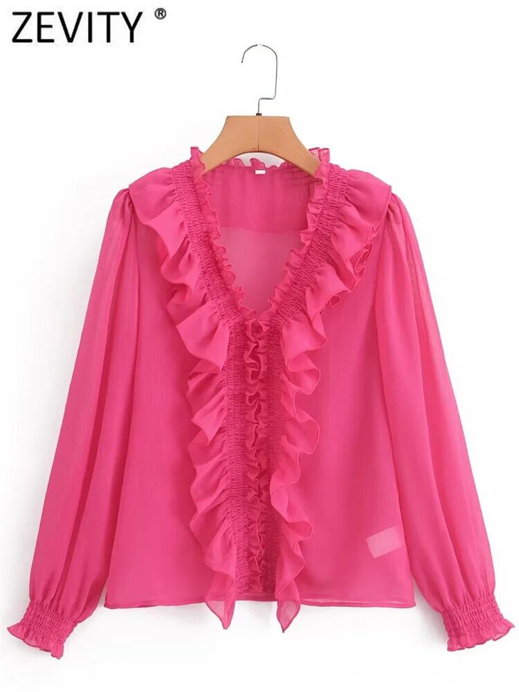 V ネックカスケードフリルシフォンブラウスレディシック長袖弾性スリムシャツトップス LS330 ロング ラッフル エラスティック 伸縮 Vネック ソリッドカラー