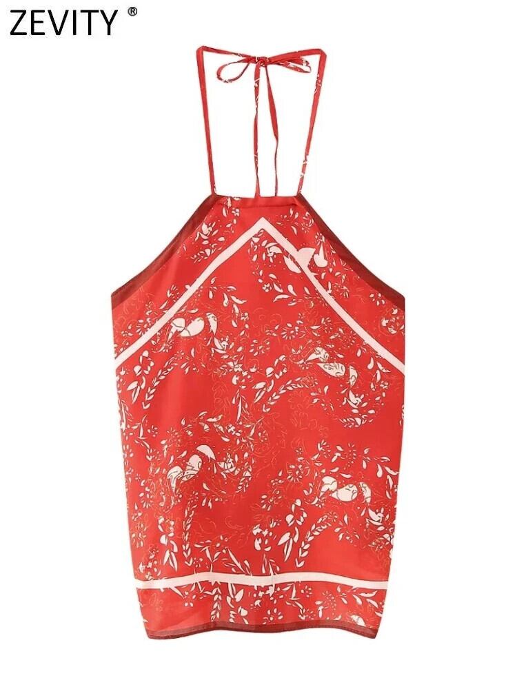 2024 シックセクシーノースリーブ花柄ホルターキャミソールタンク背中開いた蝶結びスリムシャツブラウストップス LS322 リボン