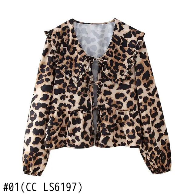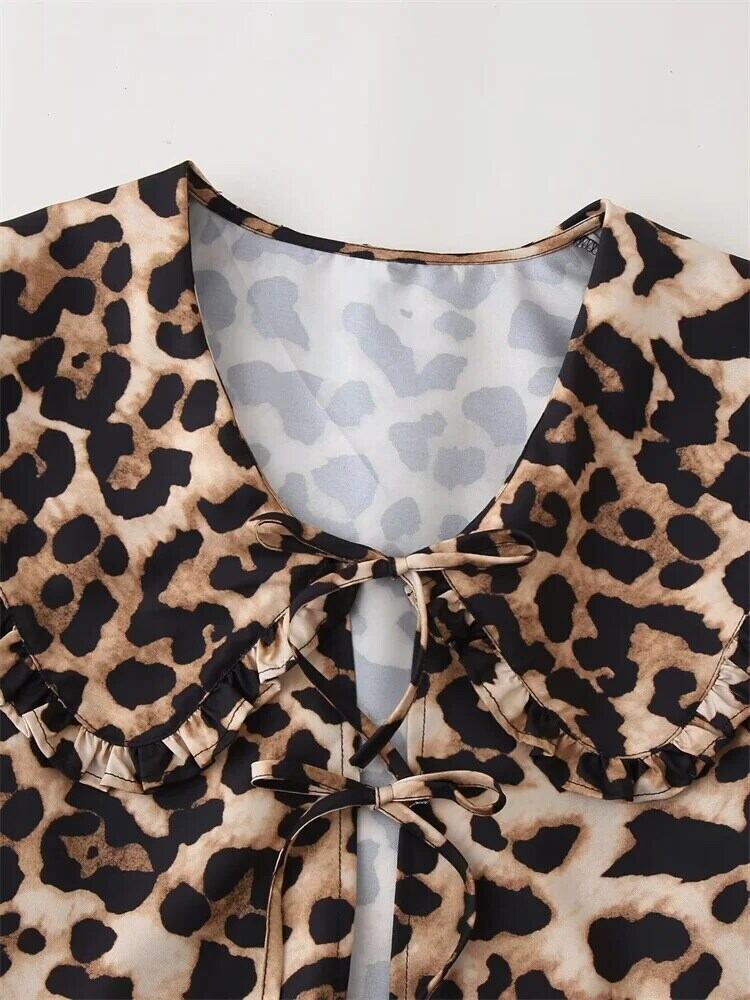 Zadvity Frauen Mode Agaric Spitze drehen Kragen Leoparden muster lässig Kittel Bluse Weibliche Schicke Schleife Hemden Tops ls6197
