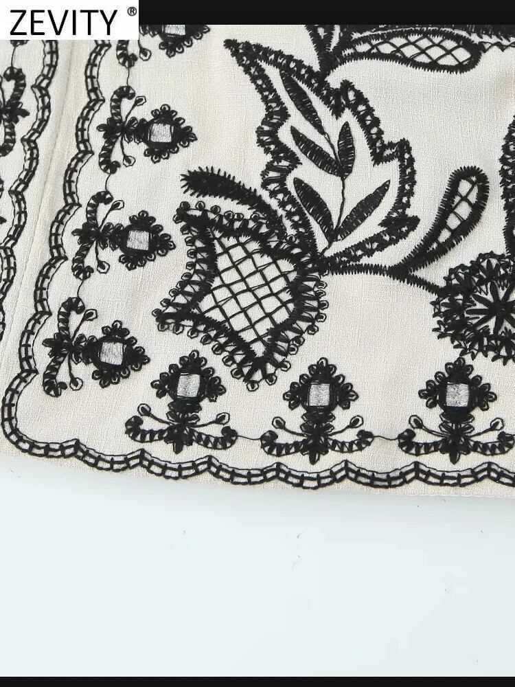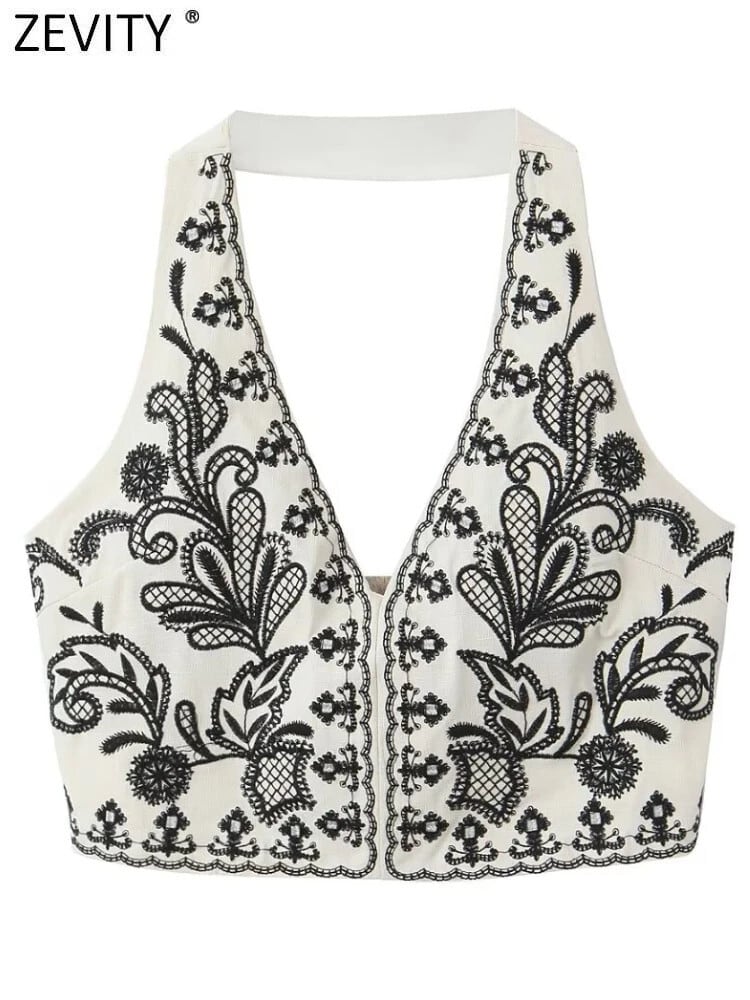 Zadvity neue Frauen Totem Blume Stickerei ネックホルダー Blusen Dame Chic rücken frei hängen am Hals Hemd kurze Tops ls6181 トートバッグ